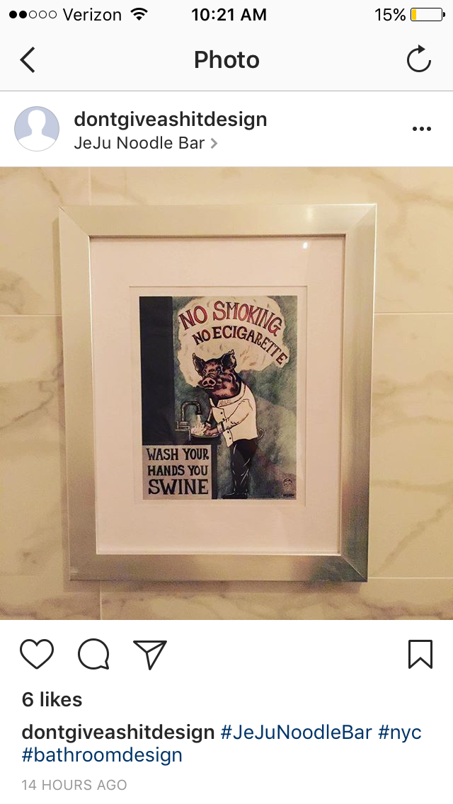 Other “Wash Your Hands” signage done for Jeju Noodle Bar.