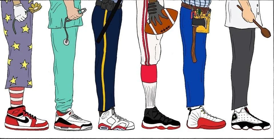 Two page illustration of how influential Michael Jordan is. Everyone wants to be like Mike.